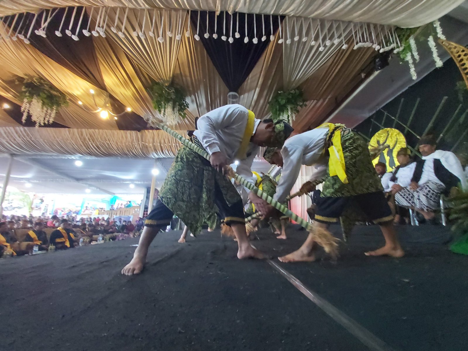 PASURUAN – Masyarakat Suku Tengger Bromo yang bermukim di wilayah Pasuruan atau disebut Brang Kulon, merayakan Hari Raya Karo pada Sabtu (13/08/2022). Pembukaan Hari Raya Karo yang dirayakan setiap tanggal 15 Bulan Karo (kedua) tahun saka tersebut, dipusatkan di pendopo Balai Desa Tosari. Sejumlah tamu undangan dari Kanwil Kemenag Jatim, TNBTS, Pemkab Pasuruan, Muspika Kecamatan Tosari, dan Kades se-kecamatan Tosari turut hadir memeriahkan. Tradisi diawali dengan upacara pembukaan Hari Raya Karo, yang dipimpin oleh seorang romo dukun yang membacakan puja mantra pembukaan Hari Raya Karo (mekakat). Namun doa penutup upacara nantinya dilakukan oleh pimpinan lintas agama, Hindu, Kristen, dan Islam. Kemudian penampilan Sodoran atau Tari Sodor yang dilakukan oleh warga dari masing-masing desa Suku Tengger yang ada di Bromo.