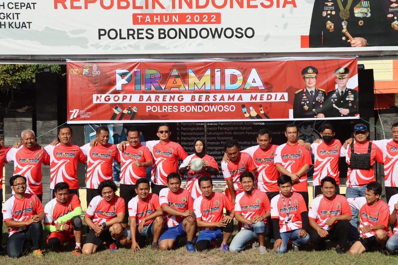 “Kegiatan olah raga sepak bola ini kami rangkum dalam kegiatan Piramida Polres Bondowoso bersama awak media atau insan pers, giat Paramida ini wajib diterapkan oleh semua Kapolres dan jajarannya,” kata Kapolres Bondowoso AKBP. Wimboko, SIK.
