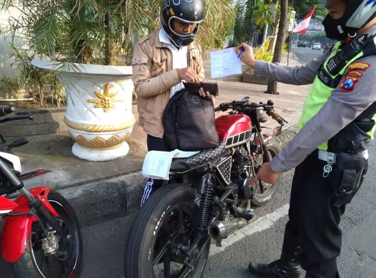 SURABAYA – Satlantas Polrestabes Surabaya melaksanakan operasi penertiban dan penindakan berupa sanksi tilang terhadap pengguna jalan yang menggunakan knalpot brong, serta kendaraan bermotor yang tidak sesuai standar dan kelengkapan berkendara.