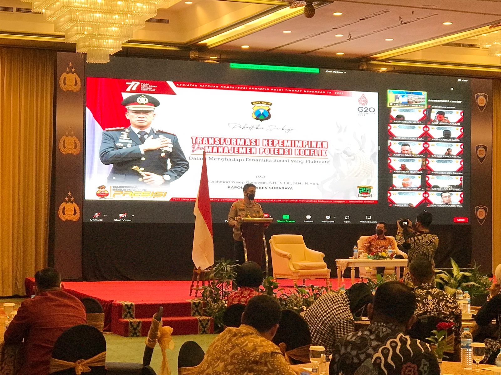 Salah satu nara sumber, Kapolrestabes Surabaya, Kombes Pol. Akhmad Yusep Gunawan, SH., S.I.K., M.H,. M.Han dengan tema ‘Transformasi Kepemimpinan Manajemen Potensi Konflik’, di hadiri 250 anggota yang terdiri dari para Kapolres dan calon Kapolres. Bertempat di Hotel Kartika Chandra, Jakarta, 23 – 24 Agustus 2022.