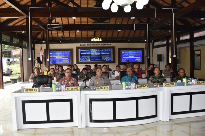 Bertempat di Joglo Wicaksana Laghawa, Polres Tanah Laut, Polda Kalsel bersama Forkopimda Tanah Laut dan Stake Holder tekait mengikuti rapat koordinasi (rakor) lintas persiapan pengamanan Natal 2022 dan Tahun Baru 2023 dengan metode Hybrid (luring dan daring ) bersama kementerian/lembaga terkait.