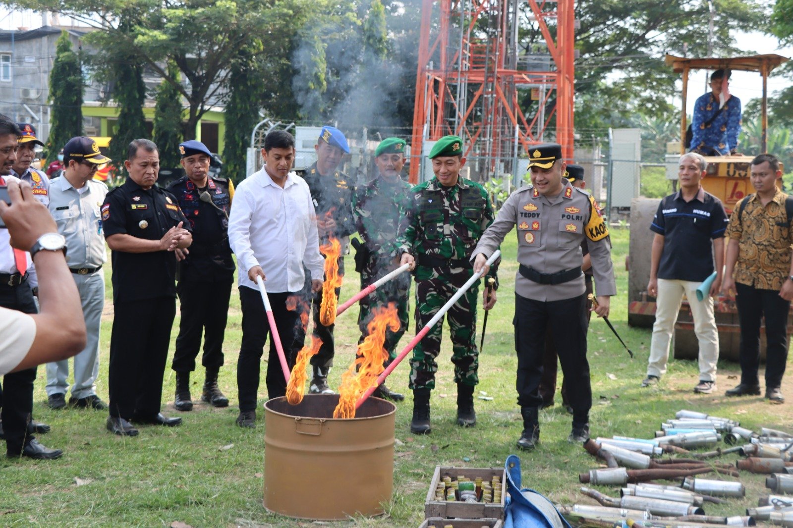 Selesai Apel Gelar pasukan forkopimda melaksanakan pemusnahan barang Bukti hasil ungkap KRYD Oleh Polres Kediri Kota dan Polsek Jajaran.