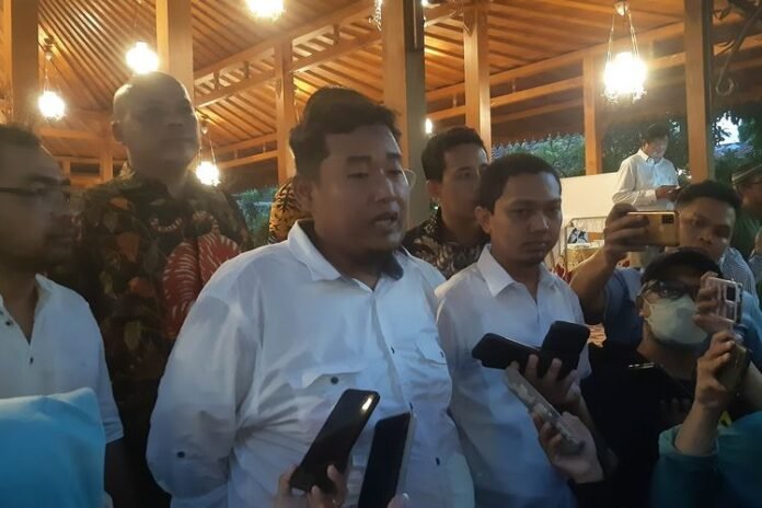 Organ relawan Jokowi yang tergabung dalam komunitas ‘Sapu Lidi’ menghadiri halal bihalal dan silaturahmi bersama Wali Kota Solo Gibran Rakabuming Raka di Loji Gandrung Solo, Jawa Tengah, Jumat (28/4/2023). Ada 18 relawan Jokowi dari Jawa Tengah dan Jawa Timur yang ikut menghadiri silaturahmi dan halalbihalal. Mereka merupakan perwakilan pengurus terdiri ketua dan sekretaris. “Alhamdulillah acara hari ini karena masih dalam rangka 1 Syawal nomor satu kita halalbihalal dan juga silaturahmi. Karena kami adalah relawan yang mulai 2014 sampai 2019 yang berjibaku untuk memenangkan Pak Jokowi di bawah,” kata Ketua Sapu Lidi Ahmad Badrut Tamam seusai menghadiri halal bihalal dan silaturahmi di Loji Gandrung Solo, Jumat.