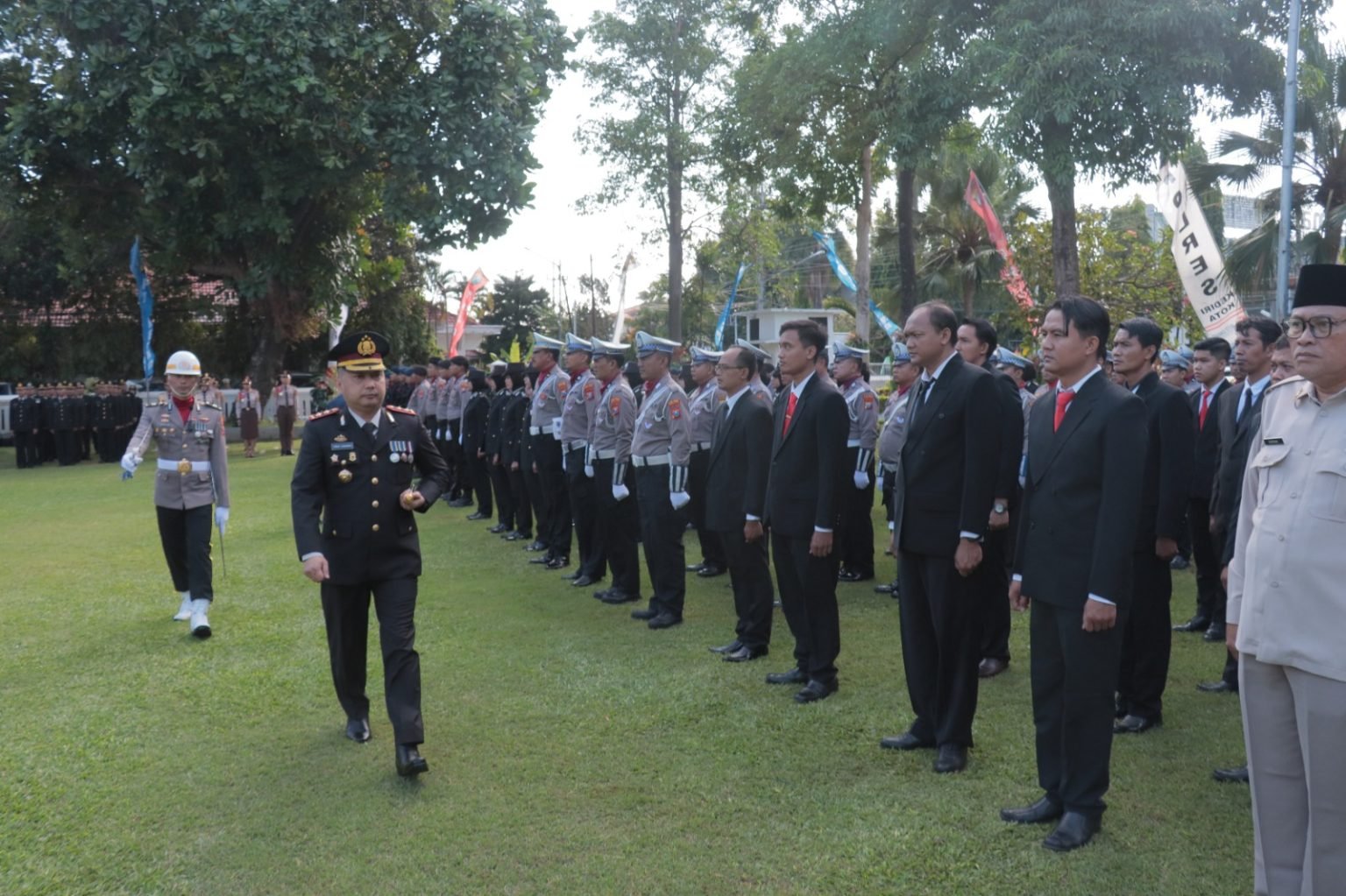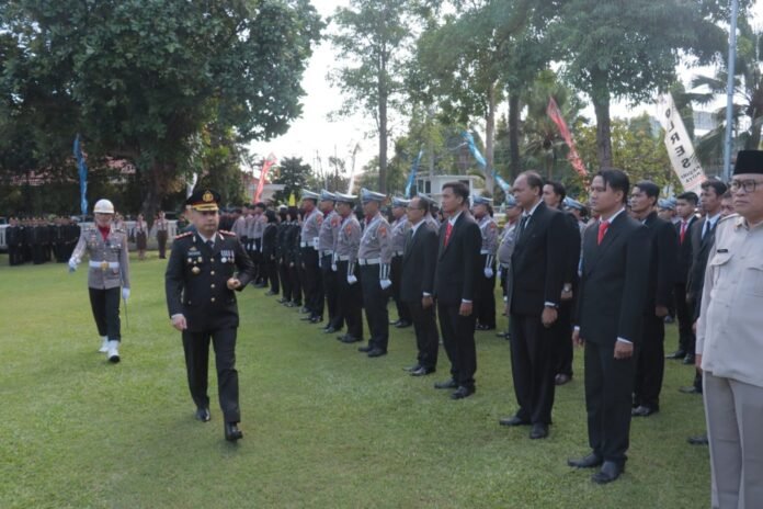 Kapolres Kediri Kota AKBP Teddy Chandra, S.I.K., M.Si. bertindak sebagai inspektur upacara