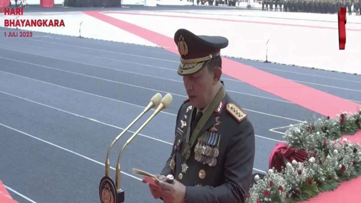 Hal itu diungkapkan dalam sambutannya di acara HUT Bhayangkara ke-77 di Stadion Gelora Bung Karno pada Sabtu, 1 Juli 2023.