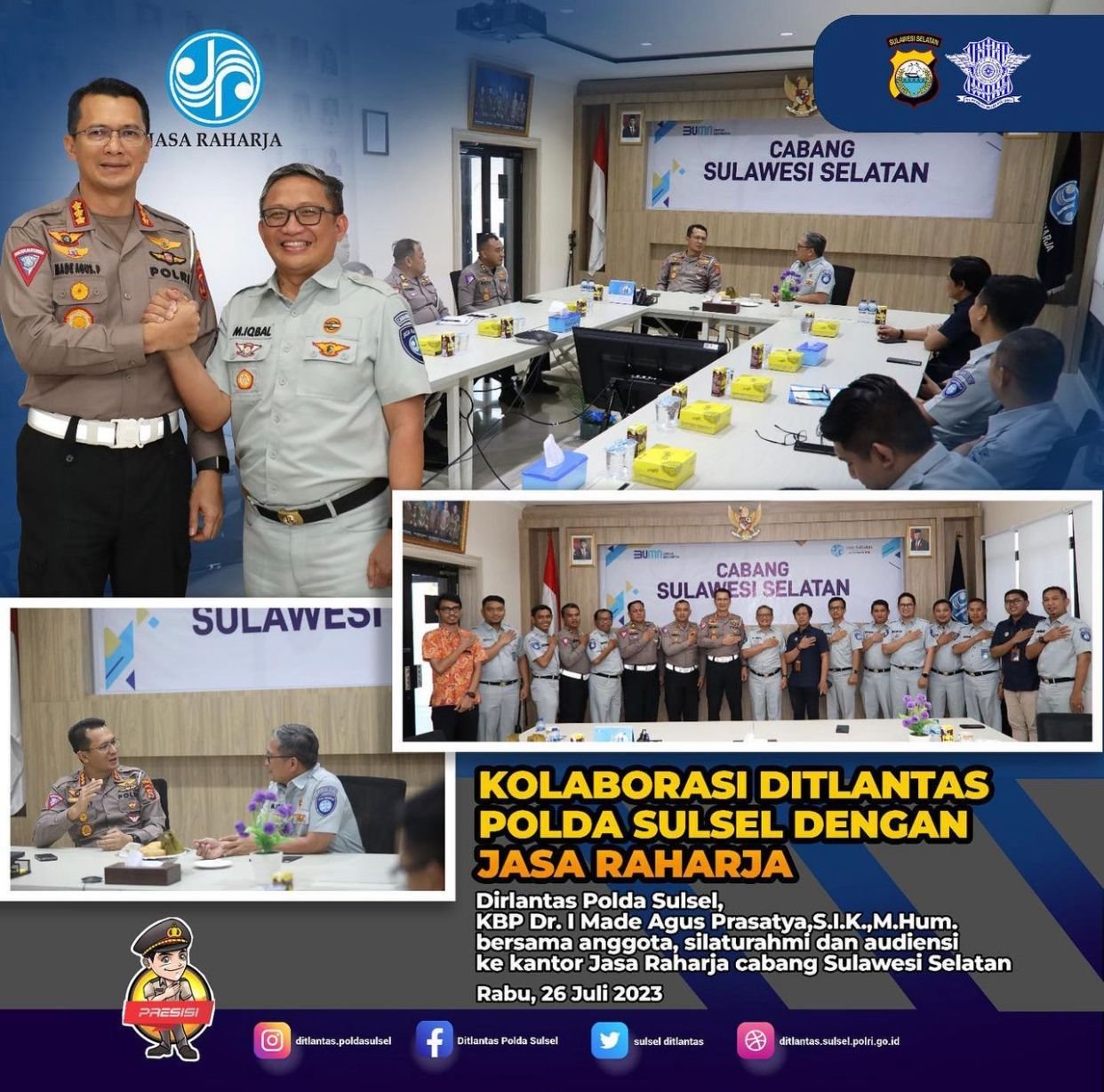 Dalam silaturahmi tersebut berlangsung dalam suasana akrab sebagai rangkaian koordinasi sebagai mitra utama dalam upaya terus berupaya memberikan pelayanan yang terbaik kepada masyarakat. Dalam kesempatan tersebut Kepala Cabang menyampaikan terima kasih kepada pihak Ditlantas Polda Sulsel yang telah bersinergi dengan baik selama ini, dan berharap semoga dapat terus dipertahankan bahkan ditingkatkan lagi. Sebagai mitra utama dari Jasa Raharja yang selama telah memberikan support yang luar biasa kepada Jasa Raharja dalam pelayanan kepada korban kecelakaan lalu lintas dan penumpang umum dengan mempercepat proses penerbitan Laporan Polisi tentang kecelakaan. Selain itu sebagai satu tim dalam Sistim Administrasi Manunggal Satu Atap (SAMSAT) dalam memberikan pelayanan administrasi pembayaran pajak kendaraan bermotor, bea balik nama kendaraan bermotor. Selain itu Jasa Raharja dan Kepolisian senantiasa bersinergi dalam usaha pencegahan kecelakaan dan penanganan korban kecelakaan lalu lintas dan penumpang umum, serta kedepannya akan bersama-sama bersinergi dalam implementasi UU No. 22 Tahun 2009 Pasal 74.
