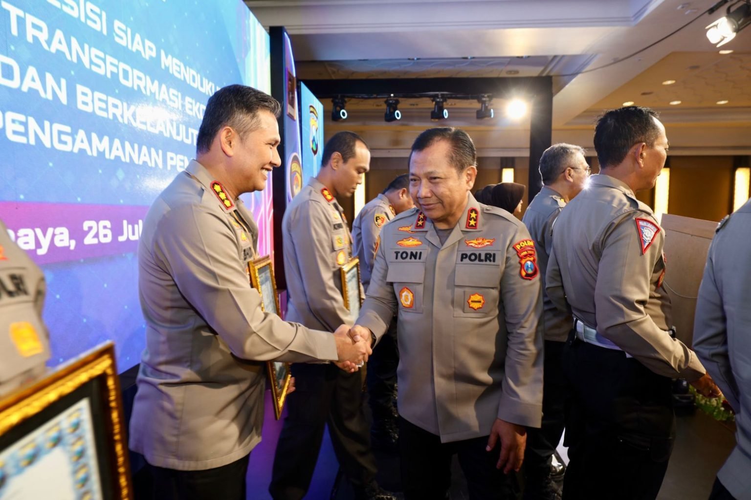 Selain itu Kapolda Jatim Irjen Pol. Dr. Toni Harmanto, M.H. juga memberikan penghargaan kepada satker jajaran Polda Jatim yang berprestasi, salah satunya ada Polresta Malang Kota yang mendapatkan predikat pelayanan prima terbaik kategori A.