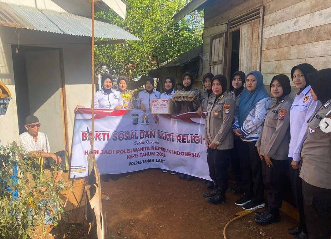 Dalam rangka memperingati Hari Jadi Polwan RI yang ke-75 tahun, Polwan Polres Tanah Laut menggelar serangkaian kegiatan bakti sosial dan bakti religi. Acara tersebut berlangsung di Kelurahan Sarang Halang, Kecamatan Pelaihari, Kabupaten Tanah Laut, Selasa (15/8).