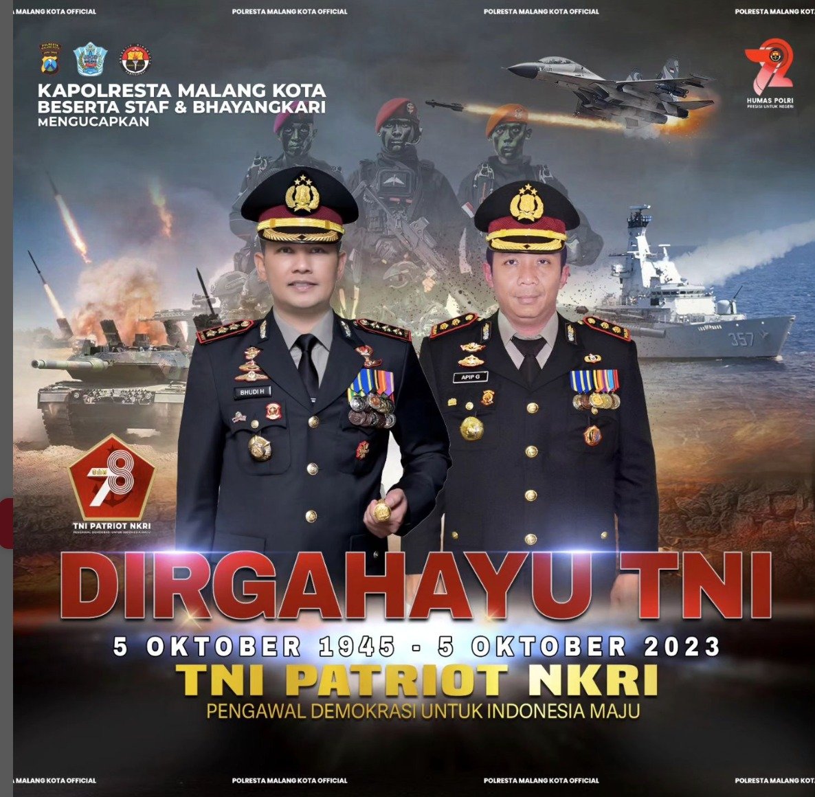 Kedatangan Polresta Malang Kota ke markas komando TNI dengan tujuan memupuk sinergitas sekaligus memberikan surprise di hari jadi TNI ke-78 pada hari ini, Kamis 5 Oktober 2023