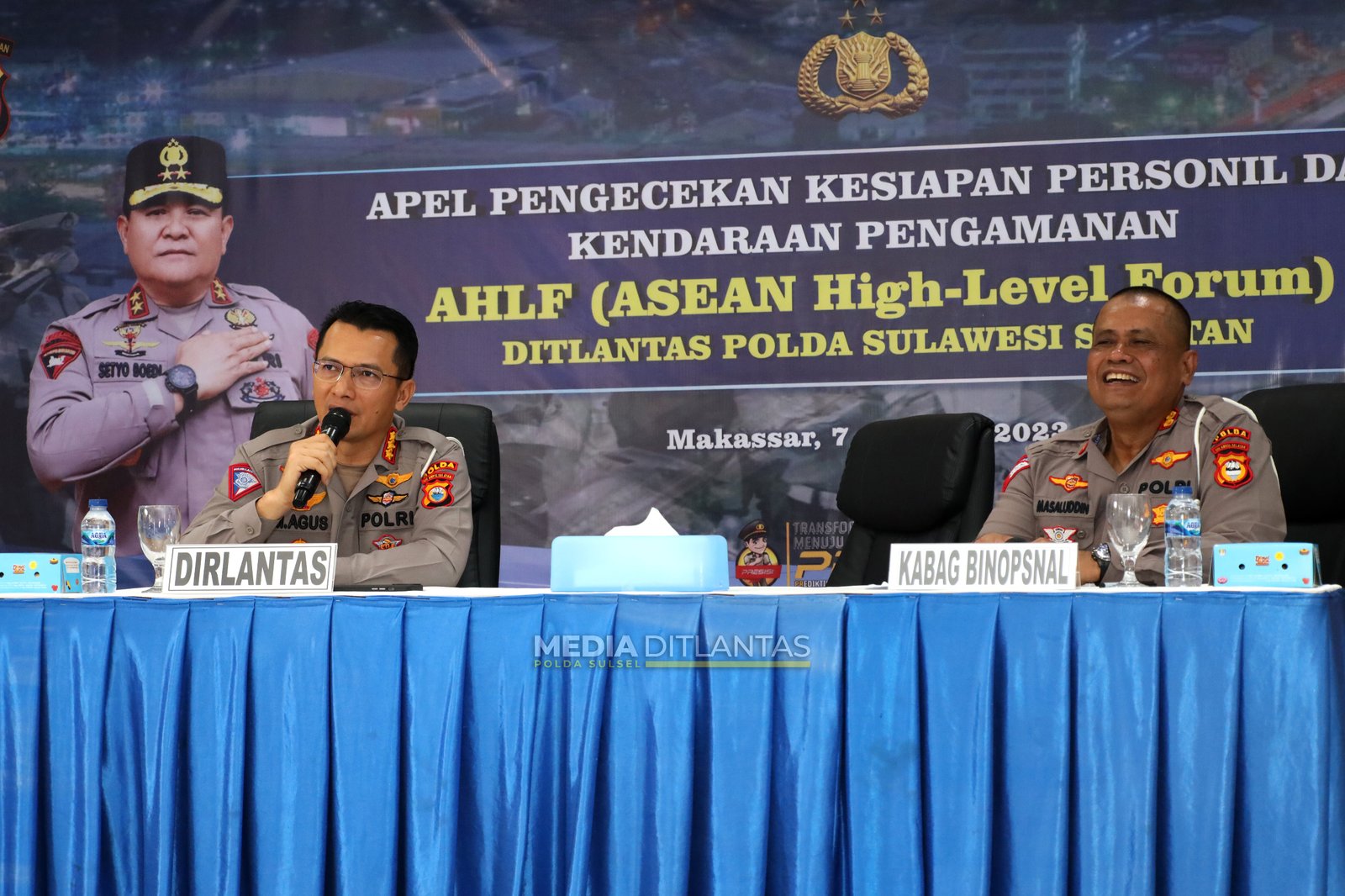 Dirlantas Polda Sulsel, Kombes Pol Dr. I Made Agus Prasatya,S.I.K., M.Hum dalam arahannya berharap personelnya dalam melakukan tugas pengamanan dan pengawalan delegasi mengedepankan pemeliharaan kamtibmas untuk menjamin keamanan dalam pelaksanaan Forum AHLF.