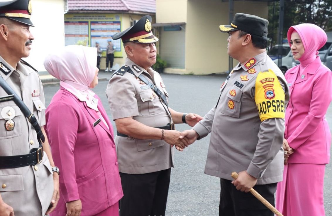 Kapolres Tanah Laut AKBP Rofikoh Yunianto, S.I.K., memimpin upacara serah terima jabatan (sertijab) Kabag Ren, Kasat Rekrim, Kasat Lantas, dan Kapolsek Jorong, bertempat di Lapangan Apel Mapolres Tanah Laut, Kamis (7/12) pagi.