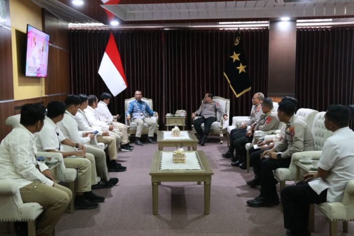 Tanjung Selor, 5 Februari 2025 – Kapolda Kalimantan Utara, Irjen Pol Hary Sudwijanto, S.I.K., M.Si., menerima kunjungan silaturahmi Kepala Kantor Wilayah Bank Indonesia (BI) Provinsi Kalimantan Utara Bapak Hasiando Ginsar Manik di ruang kerjanya. Kegiatan ini turut dihadiri oleh Wakapolda Kaltara, Kabidkeu, dan beberapa Perwira Menengah (Pamen) Polda Kaltara. Kapolda menyambut hangat kedatangan rombongan.